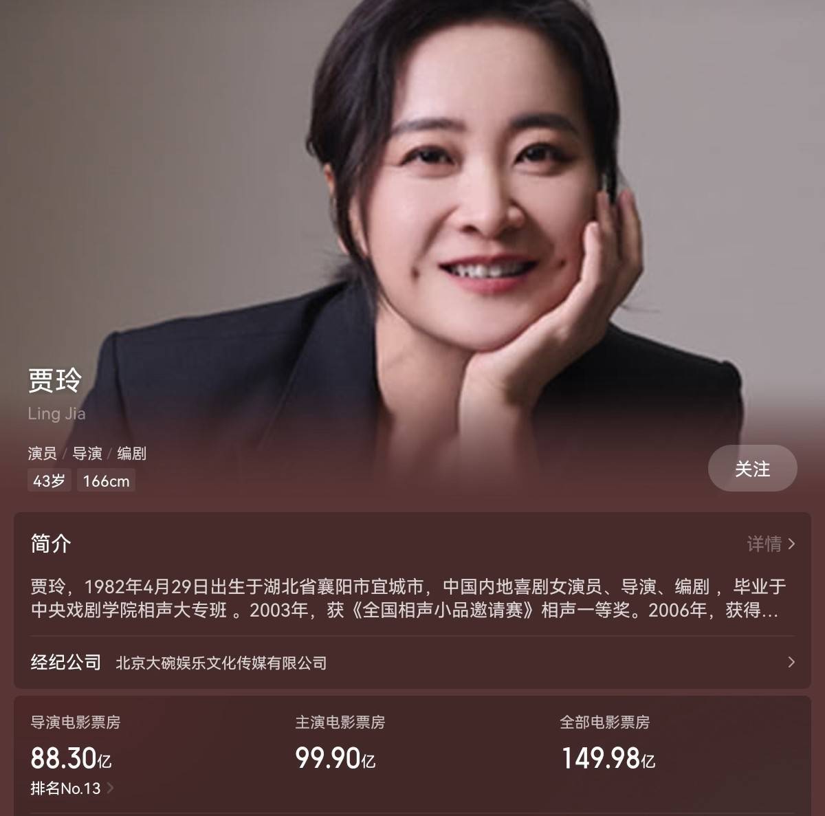 目前,贾玲导演电影的票房已经达到了88亿,主演电影票房达到了99.9亿,全部电影票房149.98亿,已然是当之无愧的百亿票房女王。