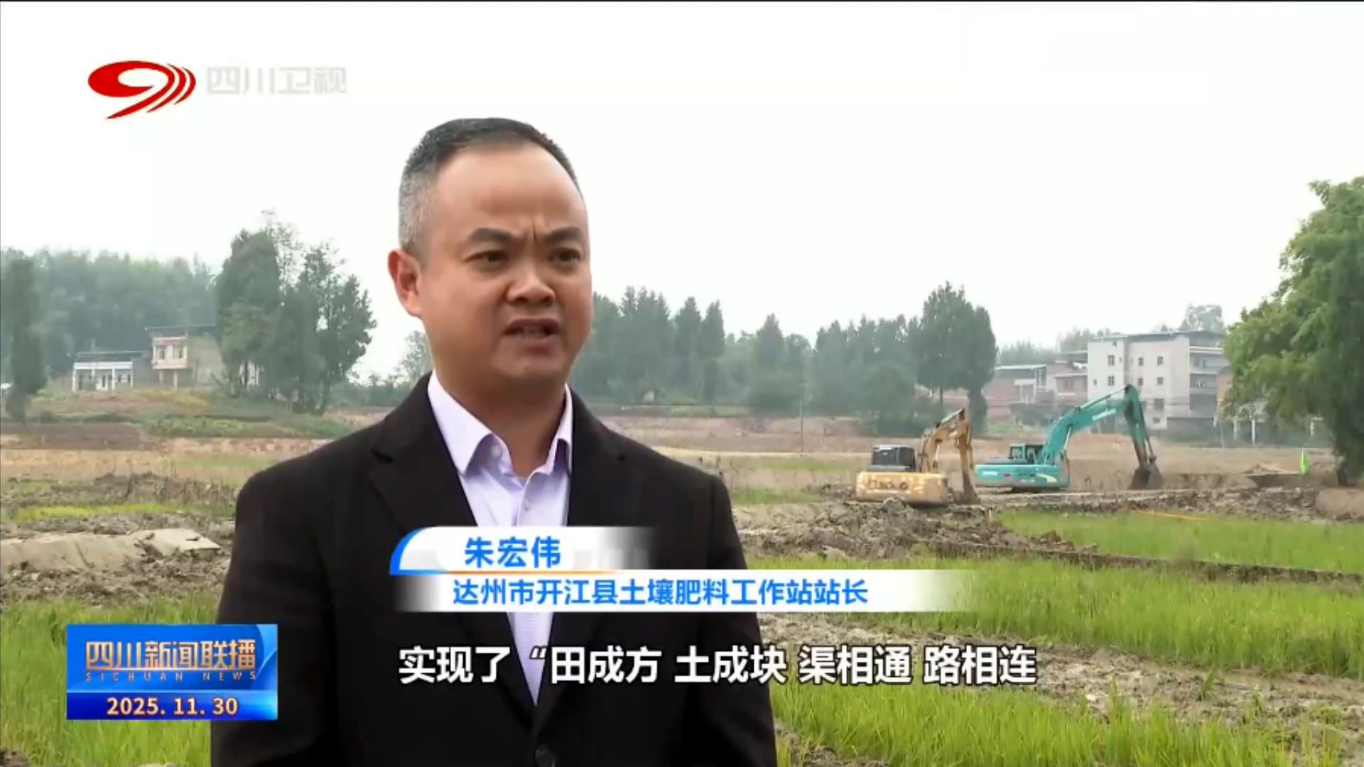 达州市开江县土壤肥料工作站站长 朱宏伟:实现了“田成方、土成块、渠相通、路相连、旱能灌、涝能排、宜机化”的目标,极大方便了农业生产。